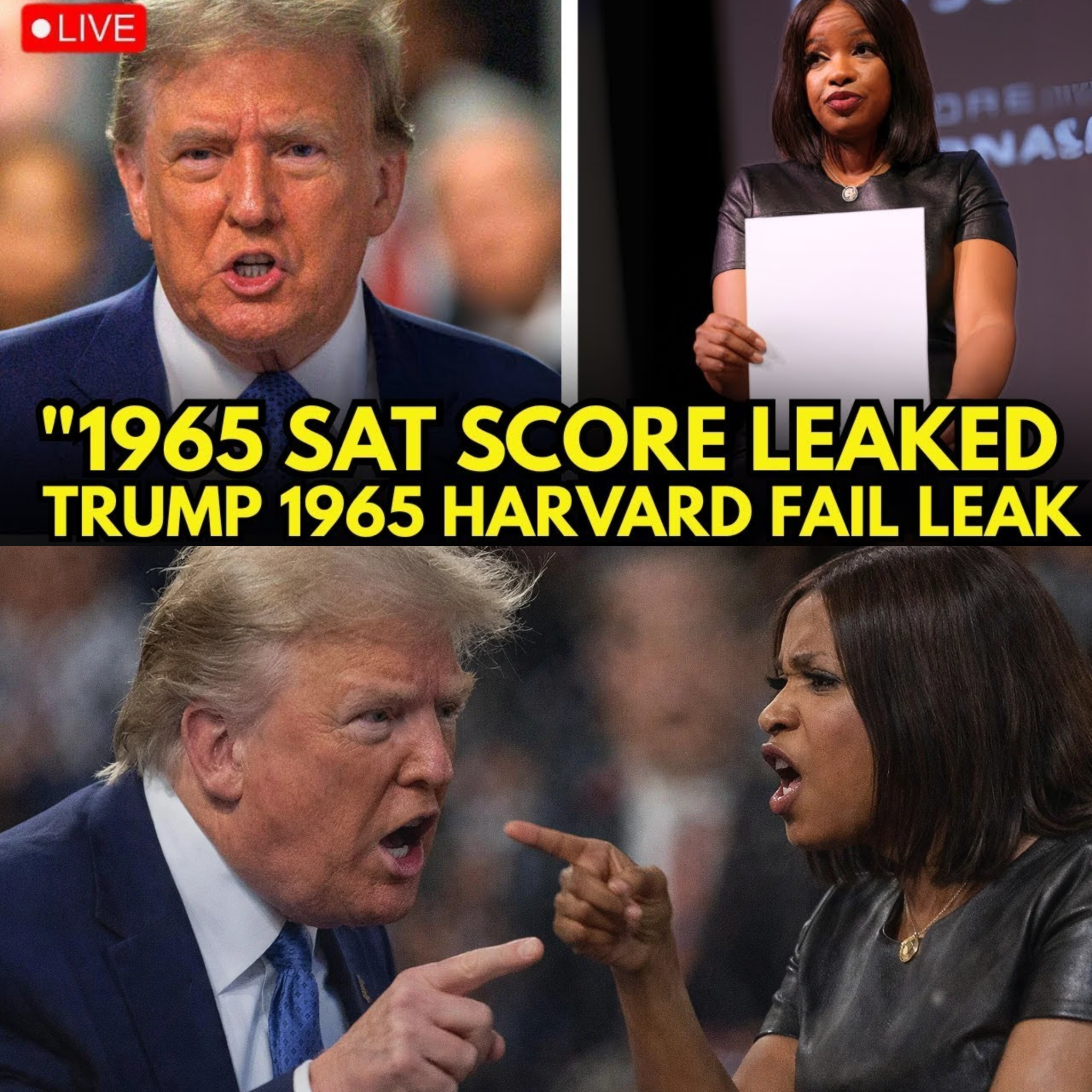 A fiery political clash has exploded across social media after former President Donald Trump mocked Harvard graduates during a heated exchange, only for the moment to take a dramatic turn when political commentator Jasmine Carter released what she claimed were Trump's SAT scores from 1965. According to Carter, the decades-old test results showed numbers that "barely cleared the passing threshold," triggering a storm of reactions and reigniting debates about Trump's academic history.