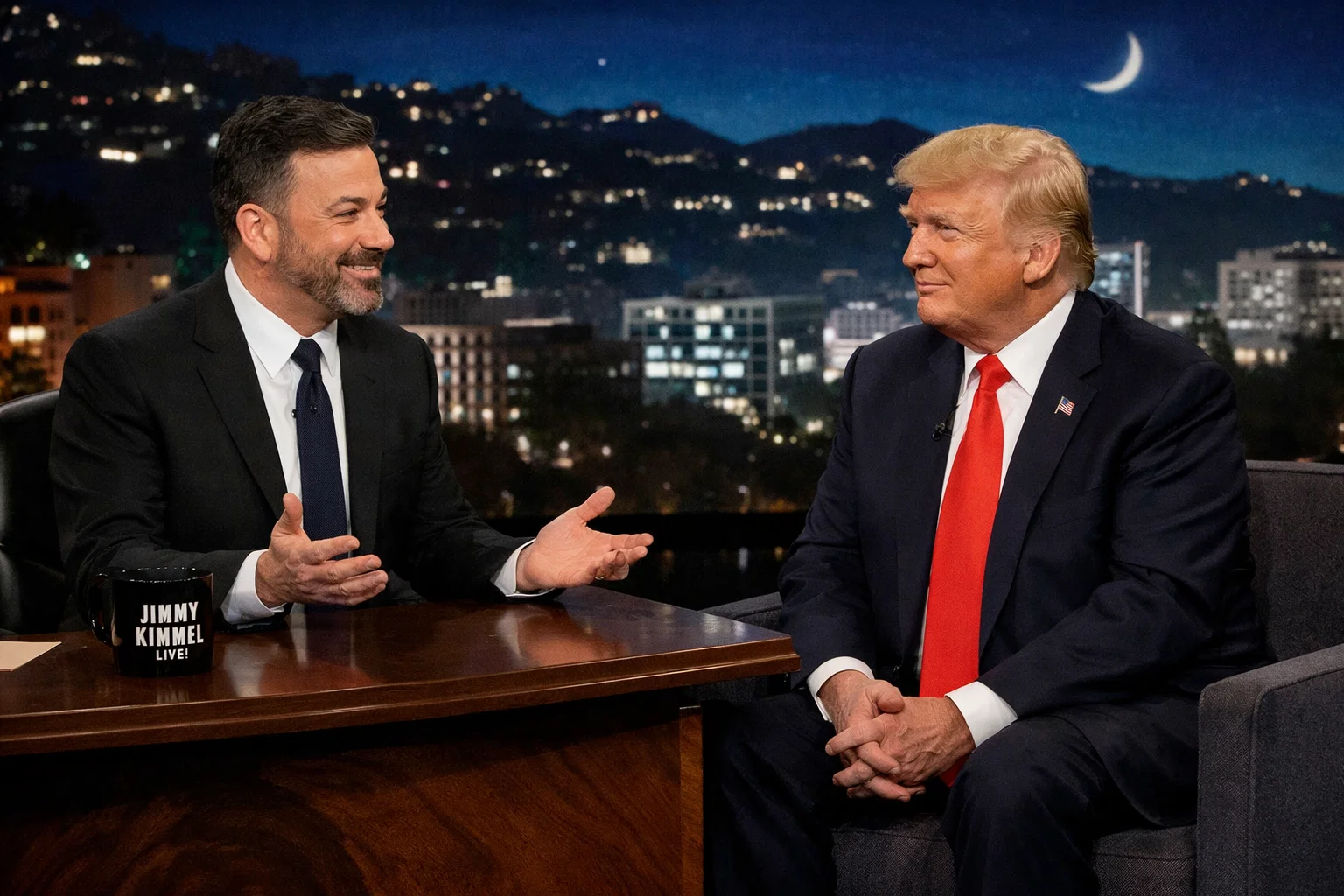 Rather than arguing louder, Kimmel used a visual reveal to redirect the conversation. The effect was immediate and powerful.